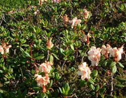 | まずは、旭平を姿見の池まで行く 遊歩道が整備されていて、キバナシャクナゲの群生がきれいだった |
