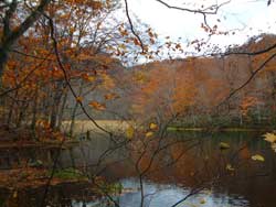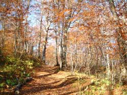 松森から蔦温泉に下る。一時間程、ブナの原生林の中のゆるやかな下り。おもわず歌を唄いたくなるような幸せ気分にひたる