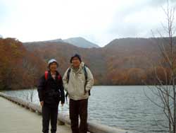 蔦温泉の手前 仙人橋でバスを降りて山道に入る。昨夜の雨で道がぬかるんでて、歩きにくい。