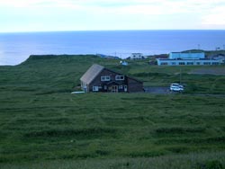 | 香深港 17:05着。迎えの車に乗ってスコトン岬に向かう。今日の宿は礼文最北端の岬にたつY・H 星観荘。 男女別の相部屋しか空いてなかった。小学生の子供がいる若夫婦がやってて、夕食後は自己紹介の時間があり、記念撮影までしてくれた。若い常連客が多い。関西、関東半々くらいかな。 翌朝、出発の時には、ギターの音にあわせてお見送りの儀式を全員でおこなう。挨拶は”おかえりなさーい” |