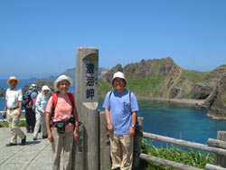 | 7月13日 今日は、俗に4時間コースと呼ばれるトレッキングコースを歩く予定だ。 スコトン岬→ゴロタ山→澄海岬(スカイミサキ)→浜中→船泊(フナドマリ) 約4時間 昨日に引き続き、今日も上天気。風ひとつない。一昨日まで風が強く、気温は8度、寒冷注意報がでて大変だったらしい。 |