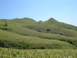 | 7月14日 今日は浜中から元地まで 西海岸8時間コースを歩く。 朝からちょっと曇りがちの天気だが、雨は心配なさそうだ 7:30出発 宿の人に車で途中の分岐まで送ってもらう 西上泊(ニシウエドマリ)分岐から2時間程、丘陵地帯から沢沿い地帯に続く、高山植物の豊富な一帯からスタート |