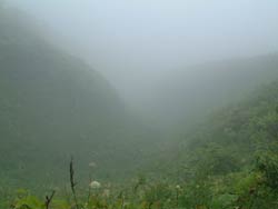 | ここからアマナの海岸まで30分 ガレガレの急坂を一気に下る。 ところどころ階段がつけられ、以前よりは大分歩きやすくなったそうだが、それでもいやな下りだった |