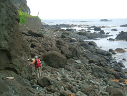 | アマナ岩に着いてほっとしたのもつかの間、宇遠内(ウエンナイ)まで海岸沿いに30分、道を探しながら岩を歩くのも結構な苦労だった | ||||||||||||||||||||||||||||||||||||||||