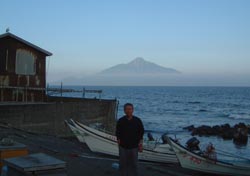海のかなたにポッカリ 利尻富士が浮かんで、幻想的だった。飽きずに眺める。 |