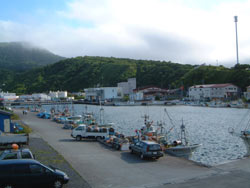 鷲泊(オシドマリ)フェリーターミナルの目の前にある ペンションみさき に落ち着く。 早い時間だったので、同宿の人々は皆 利尻山登山に出かけていて、留守だった。 夕食時には登頂祝いの祝宴が盛大だった