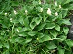 | 花と緑に囲まれて、おにぎりを食べて、幸せ気分いっぱい。休憩している間に晴天の青空となる。 出発。 空池の縁をまわって火口湖の御池(みいけ)に出る。中岳直下 満々と水を湛えた美しい池だ。 |