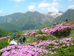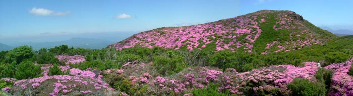 ここから平治岳に至るミヤマキリシマの大群生は天然記念物に指定されていて、他に類を見ない美しさだ。