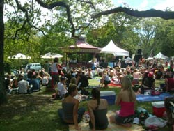 | 芝生に座ってコンサートを楽しむ若人たち |