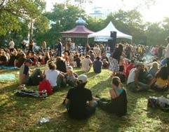 日曜日とあってアルバート公園では野外コンサートが行われていて、フリーマーケットがにぎやかだった。 ヤングでいっぱい。 |