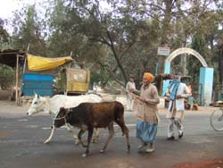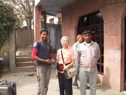 | 日が暮れて街に帰る途中、大通りの真ん中でリキシャーがすとんと止ってしまった。またガス欠だ。 交差点の高級レストランの庭まで皆でリクシャーを押していった。おじさんはビンを持ってガソリンを買いに行ってしまったので、面白半分、蚊に刺されながら待つ。1時間後、無事リキシャーに乗り込み、州政府直営の立派な土産物屋に行く。ここで、手刺繍のベッドカバーとラクダの骨で作った馬の置物を買う(100$)。 その後、HOTELマヤの野外レストランで夕食。ここがどうやらガイドの契約店らしい。タンドーリチキンとカレー、バターナンとチャイ。久しぶりの肉に舌鼓をうつ。 |