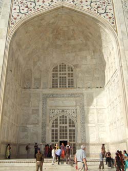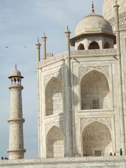 | シャンティ・ロッジからタージマハル東門までは歩いて2分。さっそく出かける。 タージマハルは想像以上に美しかった。この美しさは見ないと分からないとつくづく思った。 |