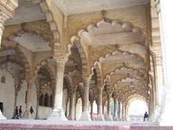 | デイワニ・アームは一般謁見の間で、シャー・ジャーハン帝がつくったもの。玉座後部の壁面には色とりどりの宝石がはめ込まれていたという。 本当にシャージャーハン帝は建築の天才だと思った。 |