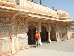 | 9時 昨日のリキシャーに乗って出かける。 旧市街に入って、まず、アンベル・タワーに登り、四方の景観を楽しんで、それからシティ・パレスに行く。 |