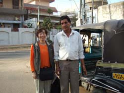 | 11時 風の宮殿に寄ってから、アンベール城へむかう。 街から北東に11キロ。最高におんぼろのリキシャーで、デコボコの路を登るのにあまりにも揺れるので、お腹の中がひっくりかえりそうだった。(そうそう、帰り道ではガソリンタンクがずれて地面に落ちそうになって、何度もヒヤヒヤさせられたっけ。) |