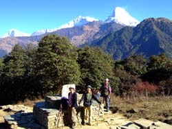| 15:20 タダパニTadapani(2630m)到着。 庭からアンナプルナサウスとマチャプチャレがきれいに見える。 |