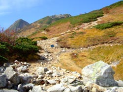 | 唐松岳からの岩場 |
