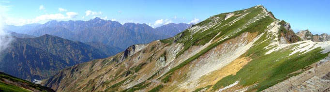 山頂から見る不帰の峰の縦走路 |