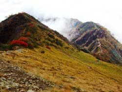 | 紅葉した遠見のやせ尾根 |