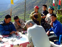 | 夕方 次々とトレッカーが到着する。隣のホテルに4人組の日本人が来た。14人のドイツ人とビッカラムさんが同じホテルに到着。 ホテルの屋上ではポーターさん達が集まってトランプ博打に余念がない。 |