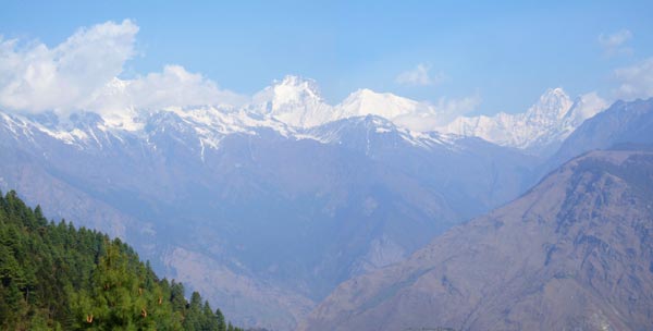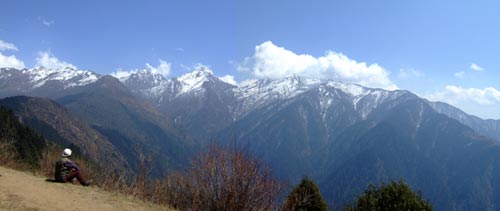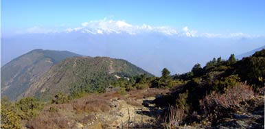 | 時間が早かったので、チャランパティまで行くことにする。 気持ち良い峠道で、ゴサインクンダ方面の斜面がきれい。 |