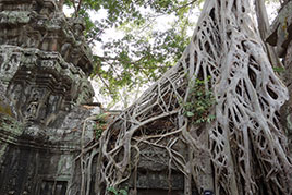 タ・プロームTa Prohmはバイヨンを造営したジャヤヴァルマン7世が母を弔うために造った仏教寺院で、広大な寺院には僧侶や踊り子が1万人近くが暮らしていたという。