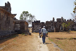 夕日の中で見るベン・メリア遺跡は殊のほか哀愁を感じさせる。観光客はほとんどいなくて、犬を連れて薬草を探しているおじさんと道連れになって、これも不思議な感じだった。 |