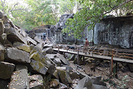 ベン・メリアBebg Mealea は外側の環濠、三重の回廊、十字型の中庭等、アンコールワットと同様の構造をもち、類似点が多いことから”東のアンコールワット“と呼ばれる。