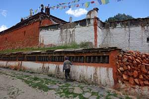 8:00出発。カクベニの迷路のような街路を抜け、ゴンパの横を通り、カリガンダキ川が開ける展望台に出る。